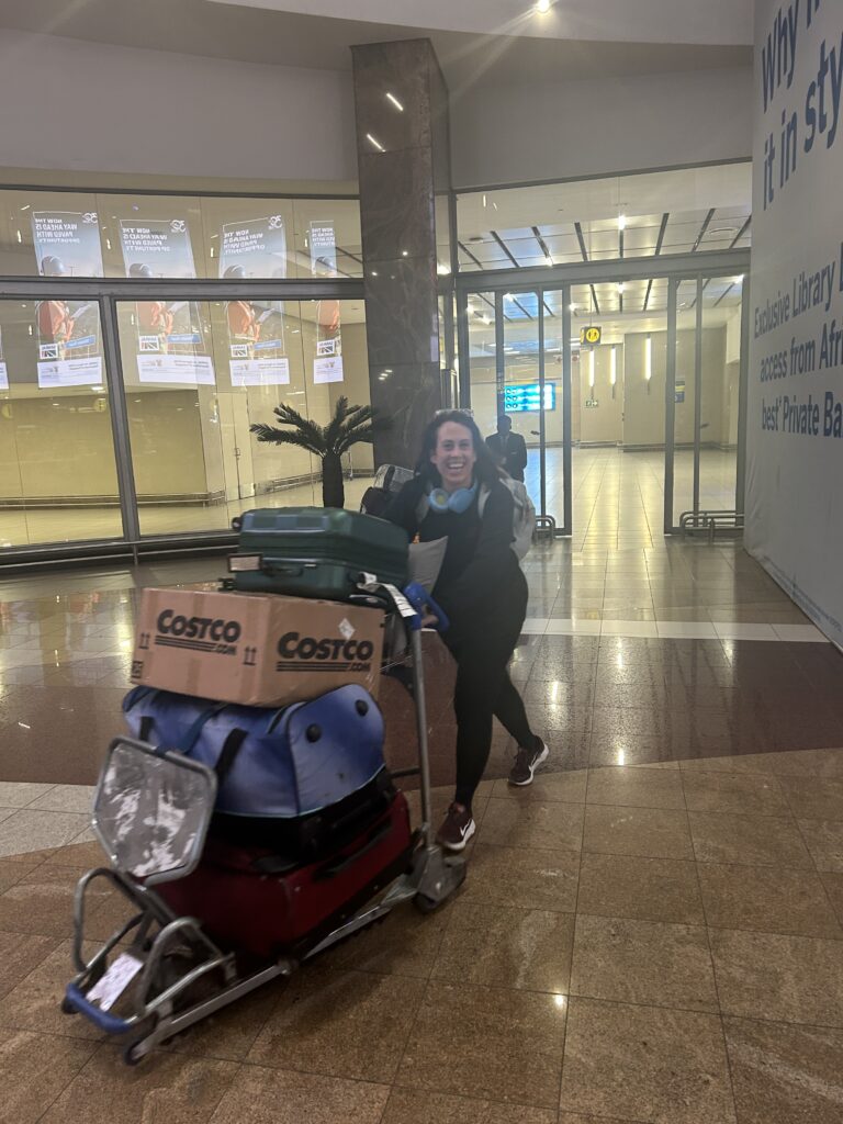 Our daughter Jodi arriving at the Johannesburg Airport. Being the thoughtful person she is, she brought extra suitcases and boxes filled with clothes to donate to an orphanage.